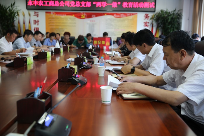 永豐農(nóng)工商總公司黨總支部為了深化對學(xué)習(xí)黨章、黨規(guī),學(xué)系列講話、做合格黨員等重要內(nèi)容的學(xué)習(xí)理解。2016年8月3日在黨總支部書記李建濤、副書記劉迎春的帶領(lǐng)下展開了“兩學(xué)一做”教育活動(dòng)測試。全體黨員積極配合認(rèn)真學(xué)習(xí),更深一步的理解其重要內(nèi)容。