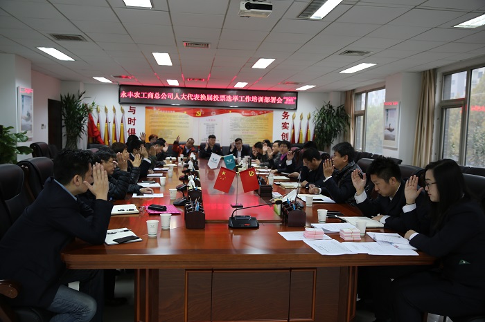 為保障永豐農(nóng)工商總公司人大換屆選舉工作的順利進(jìn)行,2016年11月10日上午,總公司領(lǐng)導(dǎo)班子及各二級公司主管領(lǐng)導(dǎo)在總公司207會(huì)議室召開了“永豐農(nóng)工商總公司人大代表換屆投票階段工作部署會(huì)”。