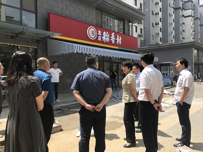 2017年6月5日,海淀區(qū)商委領(lǐng)導(dǎo)余主任在鎮(zhèn)黨委副書記尹剛的陪同下,再次來到六里屯社區(qū)檢查便民服務(wù)站商業(yè)項(xiàng)目建設(shè)進(jìn)展。