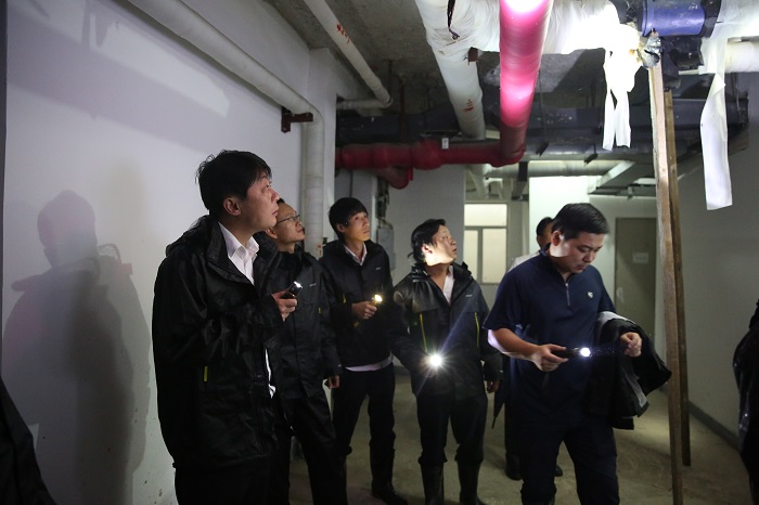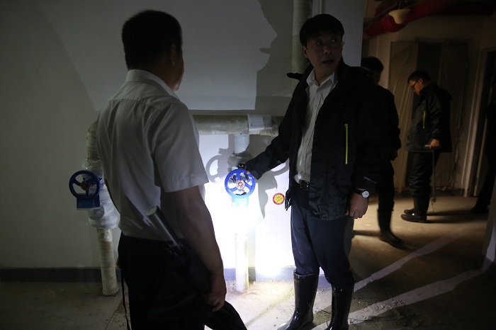 2017年6月22日上午,總公司黨總支部書記、總經(jīng)理李建濤帶領(lǐng)永創(chuàng)興業(yè)、盛智豐苑物業(yè)相關(guān)工作人員,對六里屯、大牛坊安置房回遷小區(qū)地下車庫、電梯、雨水管道等容易造成積水區(qū)域進行重點檢查,并檢查各項防汛措施和巡檢記錄。要求對電梯積水、管道漏水問題立即搶修,派遣巡檢員24小時觀察值守,全力保障防汛設(shè)備有效運轉(zhuǎn)。
