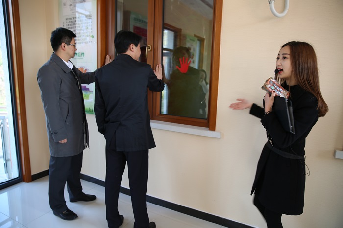 隨后考察團(tuán)來(lái)到門窗性能體驗(yàn)中心參觀學(xué)習(xí),通過對(duì)門窗保溫性能體驗(yàn)區(qū)、隔聲性能體驗(yàn)區(qū)、抗風(fēng)壓體驗(yàn)區(qū)親身體驗(yàn),學(xué)習(xí)了解到各種高科技門窗實(shí)用性能和制作工藝。