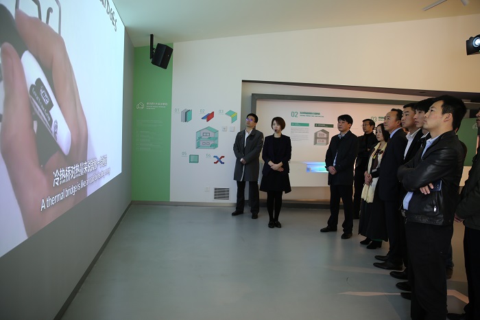 來(lái)到超低能耗建筑主題館,奧潤(rùn)順達(dá)集團(tuán)常務(wù)副總裁王杰先生熱情接待考察團(tuán)一行,陪同考察團(tuán)學(xué)習(xí)“被動(dòng)式住宅”的發(fā)展歷程。通過觀看宣傳片和實(shí)際體驗(yàn),考察團(tuán)學(xué)習(xí)到“被動(dòng)式住宅”的設(shè)計(jì)理念及發(fā)展歷程。