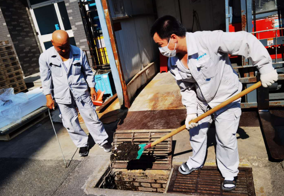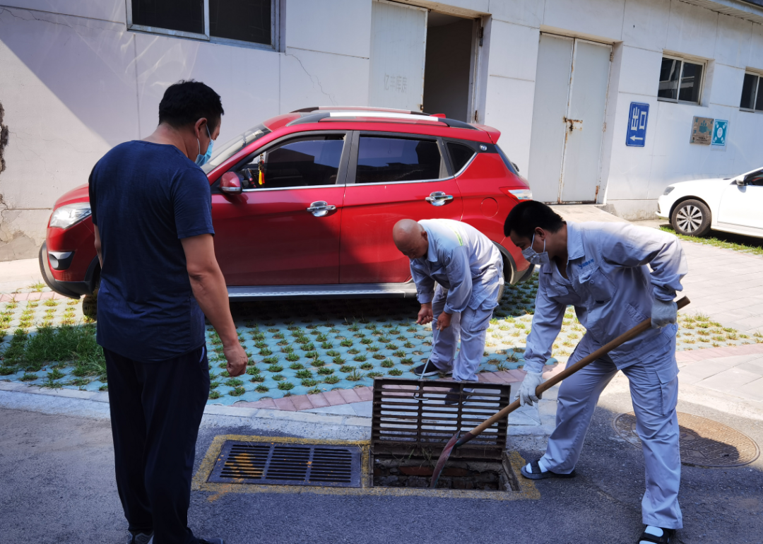 物業(yè)公司工作人員對(duì)園區(qū)防汛設(shè)施進(jìn)行了檢查、對(duì)排水系統(tǒng)進(jìn)行了清理。