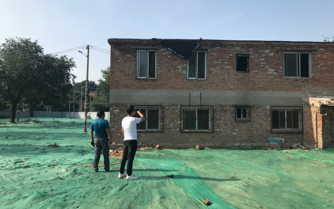 永豐屯村、屯佃村環(huán)境整治項(xiàng)目工作人員針對(duì)疏解整治區(qū)域內(nèi)的拆除現(xiàn)場(chǎng)做防汛安全檢查。