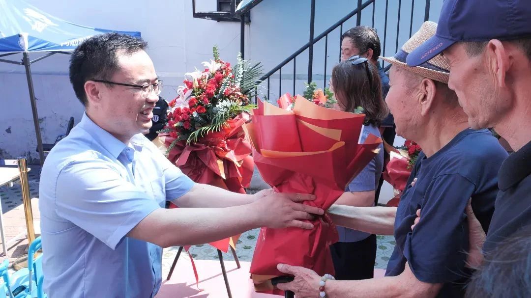 在鮮花、祝福、掌聲和歡聲笑語的簇?fù)碇?,現(xiàn)場拿到騰退款的村民喜悅溢于言表,傳遞出兩村騰退村民的心聲和對未來美好生活的期盼。同時,鎮(zhèn)領(lǐng)導(dǎo)們共同來到現(xiàn)場,見證這一激動人心的時刻,為首批領(lǐng)款的村民送上衷心的祝愿,祝愿他們今后的日子越過越好!