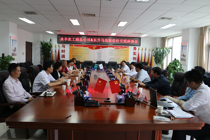 2016年5月11日星期三下午,永豐農(nóng)工商總公司邀請(qǐng)海淀區(qū)東升鎮(zhèn)馬坊股份社相關(guān)領(lǐng)導(dǎo)在總公司會(huì)議室召開(kāi)工作交流座談會(huì)。出席本次會(huì)議的有:東升鎮(zhèn)馬坊股份社董事長(zhǎng)楊浩、總經(jīng)理梁衛(wèi)東、黨總支副書(shū)記安政華及班子成員;永豐農(nóng)工商總公司董事長(zhǎng)吳茂強(qiáng)、總經(jīng)理李建濤、副總經(jīng)理劉迎春以及其他班子成員。會(huì)議由永豐農(nóng)工商總公司總經(jīng)理李建濤同志主持。